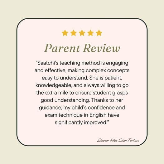 “Saatchi's teaching method is engaging and effective, making complex concepts easy to understand. She is patient, knowledgeable, and always willing to go the extra mile to ensure student grasps good understanding. Thanks to her guidance, my child's confidence and exam technique in English have significantly improved.”