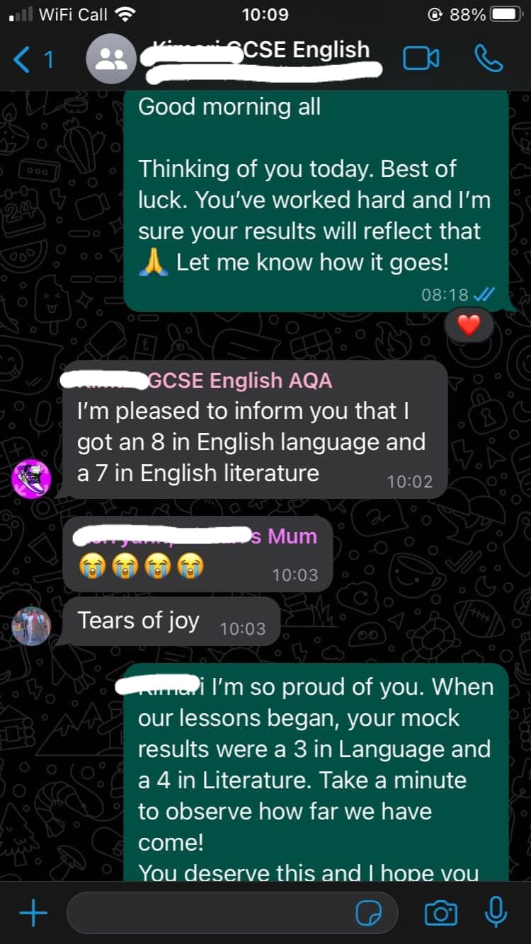 “Thank you so much for your support - I really think it boosted his confidence and grades.”